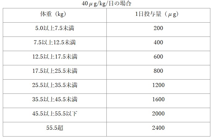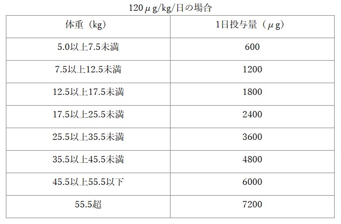 なお、効果不十分な場合には、120μg/kgを1日1回に増量することができますが、1日最高用量として7200μgを超えないこととされています。