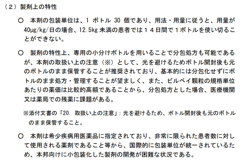 • 小児加算:本剤は、小児に係る用法・用量が明示された初めての抗FcRnモノクローナル抗体であること、比較薬のリスティーゴは市場性加算(Ⅰ)の適用を受けているが、小児の用法・用量は承認されていないことから、加算の要件に該当する。本剤の投与対象となる小児患者の年齢範囲が限定的であること等を踏まえ、加算率は10%が妥当である。