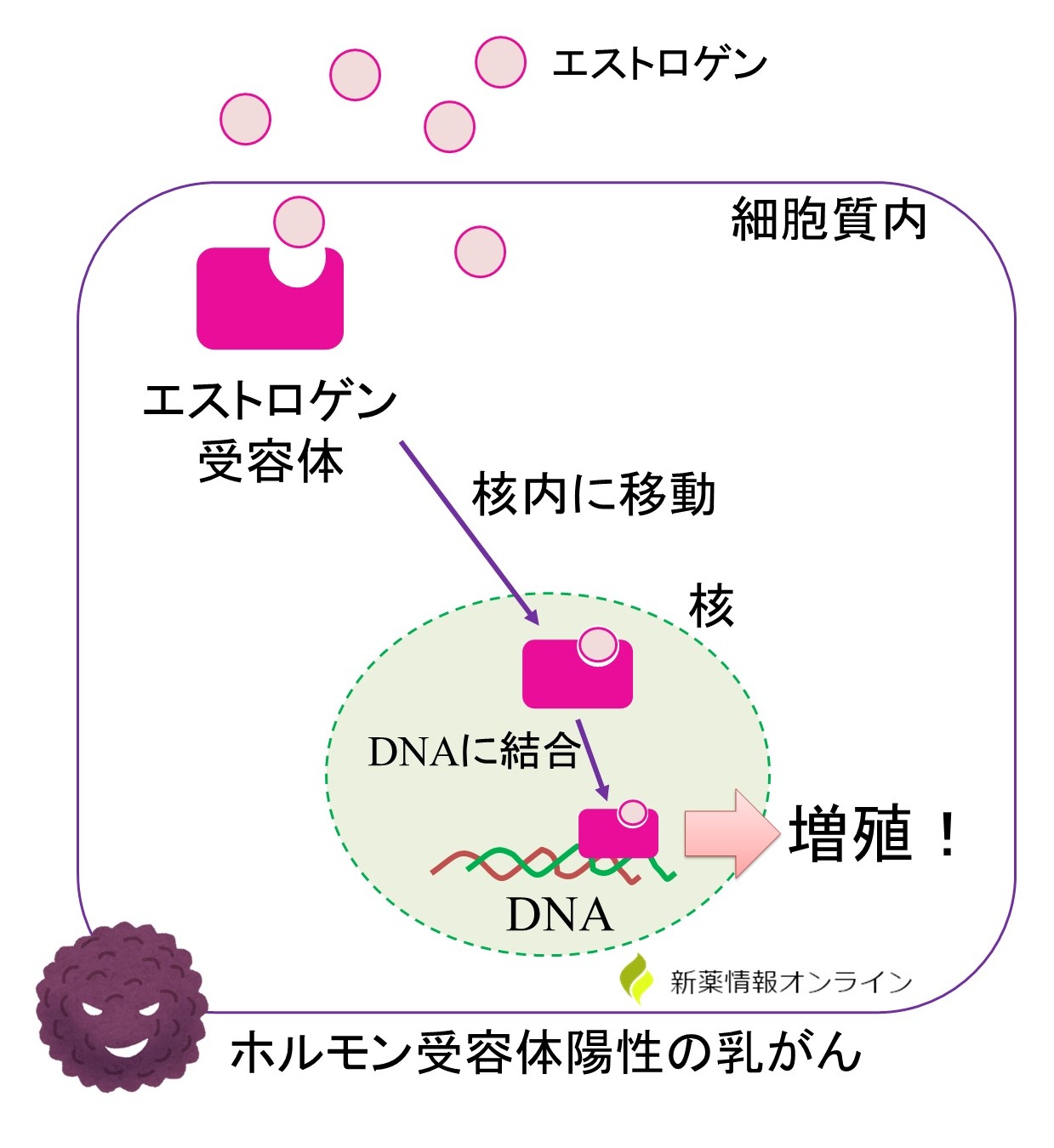 エストロゲンの量が減るため、乳がん細胞の増殖が抑制できるといった作用機序ですね。