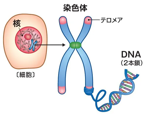 テロメアが短くなるほど、体全体の老化が進むと考えられているため、「生命の回数券」と考えることもできますね。