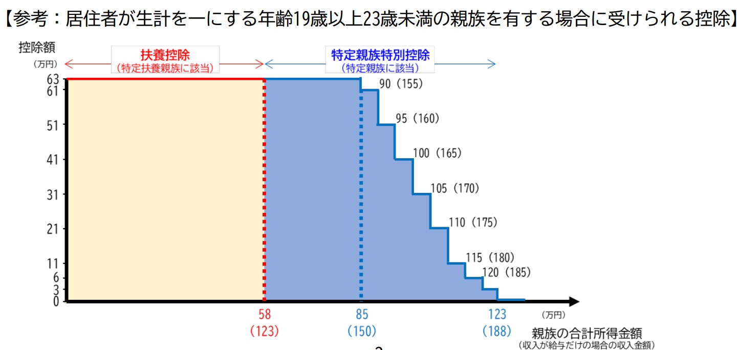 従来の「特定扶養控除」やと、特定親族の合計所得金額が48万円(給与年収で103万円相当)を超えると控除が一気にゼロになってたんやけど、この制度のおかげで、150万円を超えたとしても控除額が段階的に減っていくように決められたんや。