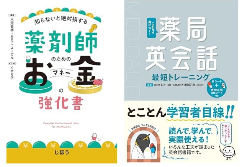 選考に進まれた方に「薬剤師のためのお金の強化書」または「これなら身につく!薬局英会話 最短トレーニング」を贈呈します。