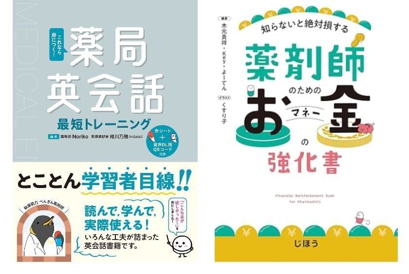 選考に進まれた方に「薬局英会話 最短トレーニング」または「薬剤師のためのお金の強化書」を贈呈します。